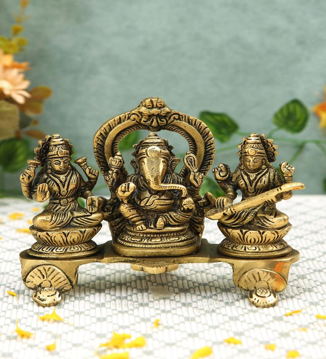 Ganesh Laxmi Saraswati Set Gold Brass Idol