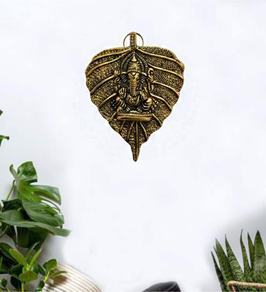 Ganesh Leaf design Metal wall hanging D cor (Golden)