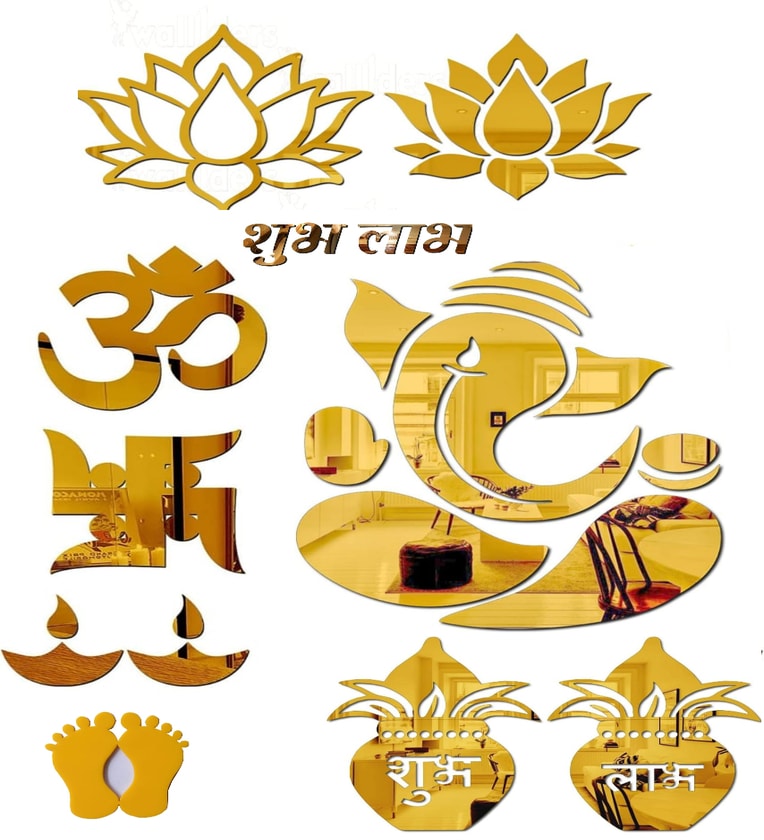This festive season decoartate your home office with this Art House festive decoration 12 self adhesive stickers Pack. This pack contain 12 pcs of acrylic festive sticker made of high thickness 2mm glossy golden mirror acrylic. Pack can also be gifted to your loved one sheet . No assembly required just removed self adhesive sticky layer from back of product and paste it on clean surface. Also remove uper protective layer for mirror glossy look.