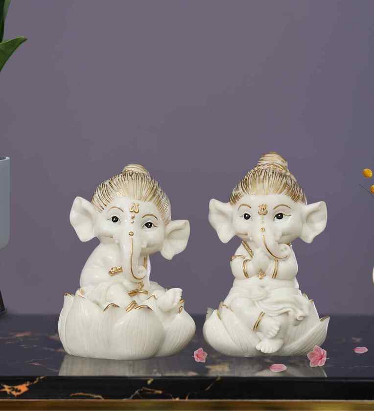 Ganesha on Lotus Idols-Set of 2
