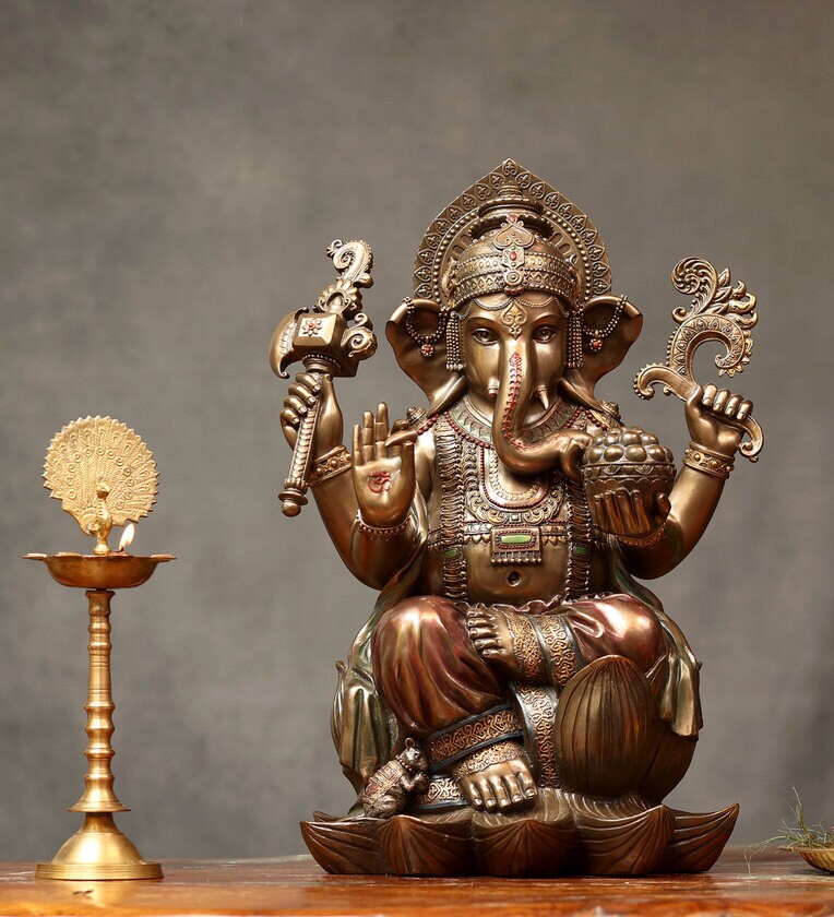 Although he is known by many attributes, Ganesha's elephant head makes him easy to identify. Ganesha is widely revered as the remover of obstacles, the patron of arts & sciences and the deva of intellect and wisdom. As the god of beginnings, he is honoured at the start of rites and ceremonies.