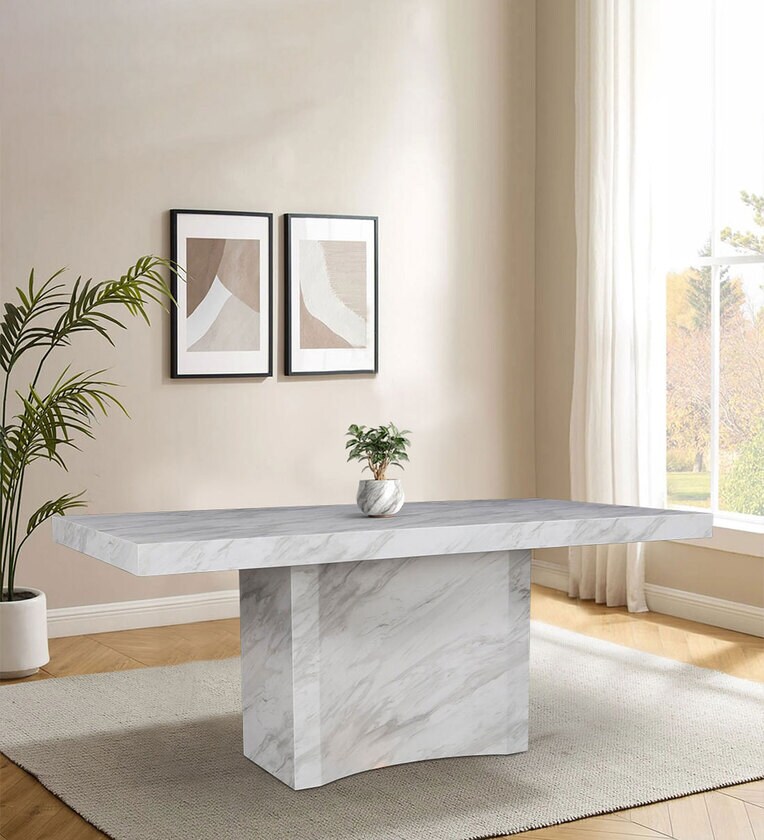 Material :- The Garnet Dining Table Is A Masterpiece Of Design And Durability. Construction :- it's marble finish top is incredibly easy to maintain, ensuring its enduring beauty. Size & Components :- The table boasts an impressive 80mm thick tabletop, adding to its robustness and making it the focal point of your dining room. Finish :- The dining table is finished with a luxurious white marble finish, a choice that's as much about aesthetics as it is about practicality. Colour /Size Option :- White