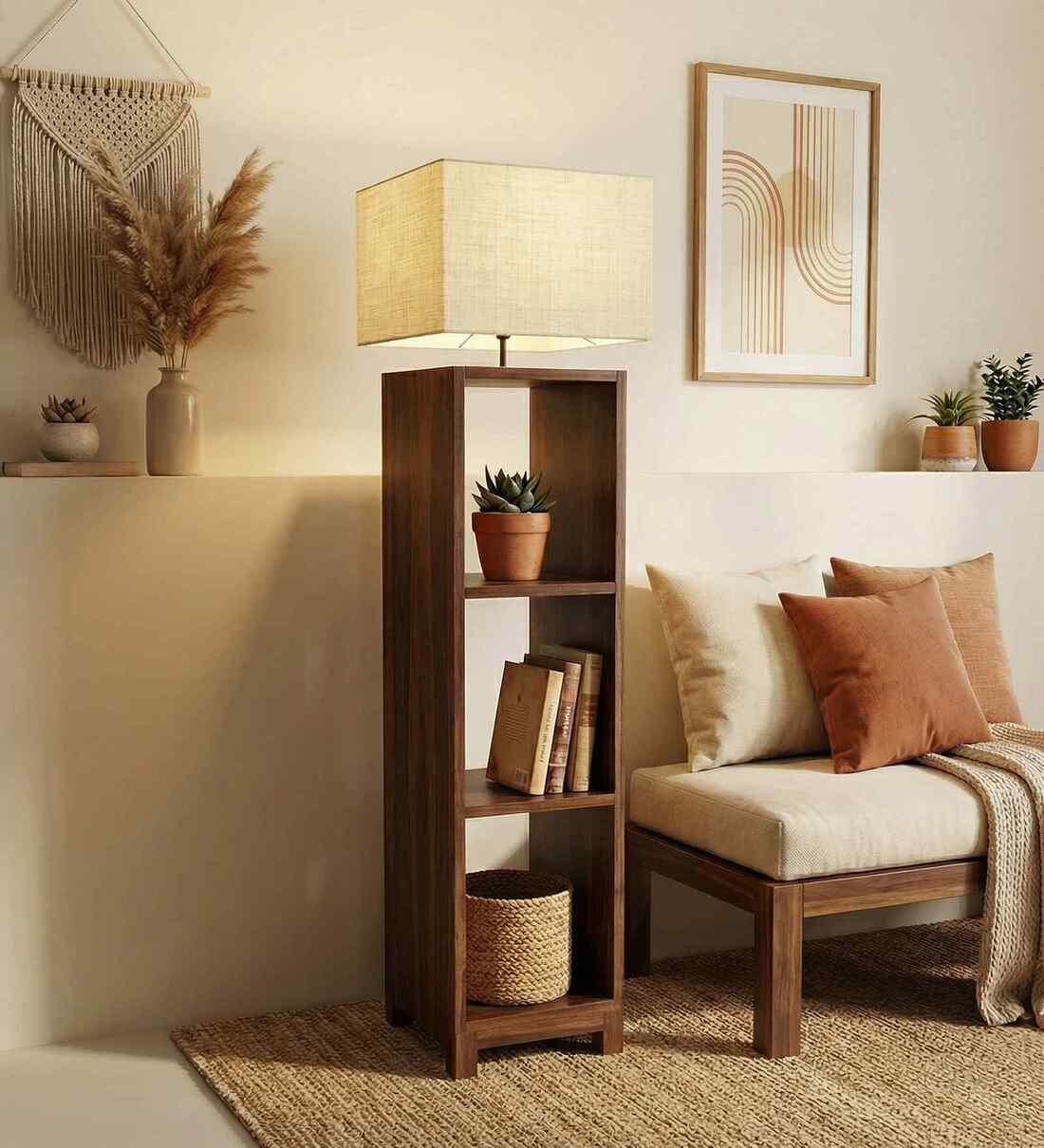 Genevieve Wooden Shelf Floor Lamp with Jute Shade & Brown Base