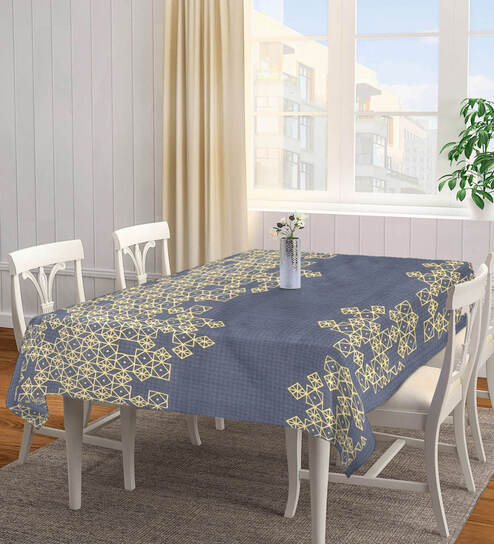 Geometric (72x52) Grey Cotton Blend Table Cloth