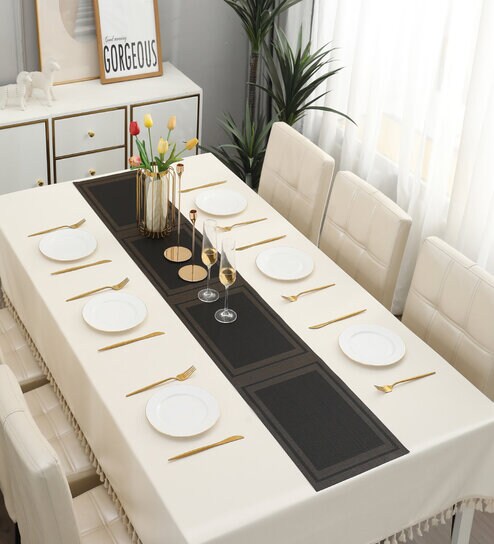 30x180 cm dining table runner. Can also be used on TV cabinets, chest drawers etc.Quality Material - This dining table runner is made using a blend of 70% PVC and 30% Polyester.Easy to Clean - Simply wash this table runner with tap water or a sponge wipe and it will be clean.Size - This dinner table runner measures 30x180 cm in size.Package Contents - 1 table runner for dining Table.