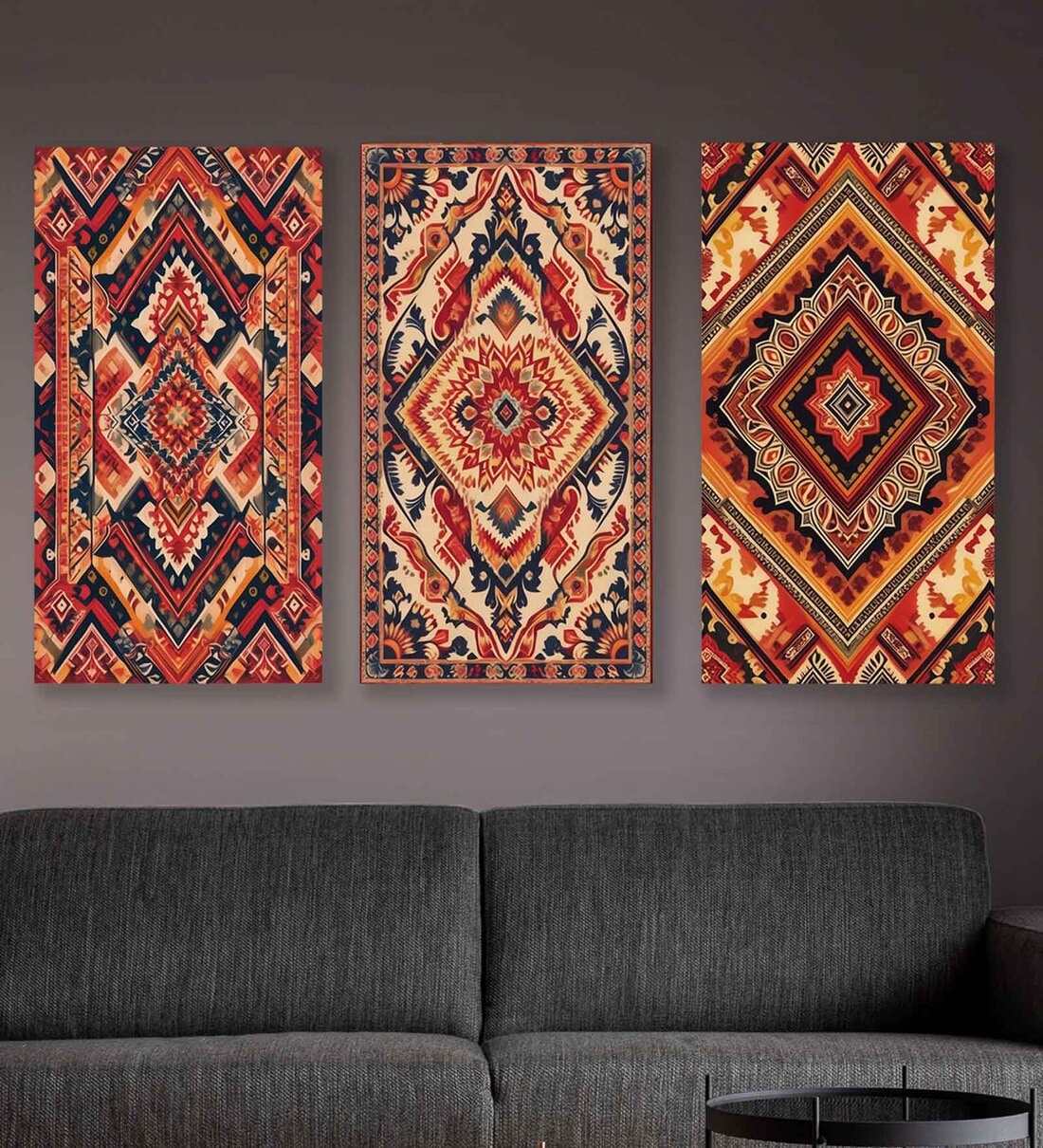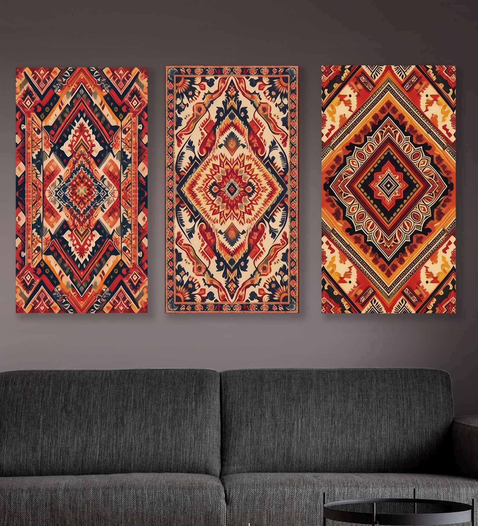 Geometric Canvas Art Set of 3 Printed Wall Painting Stretch Canvas Frame