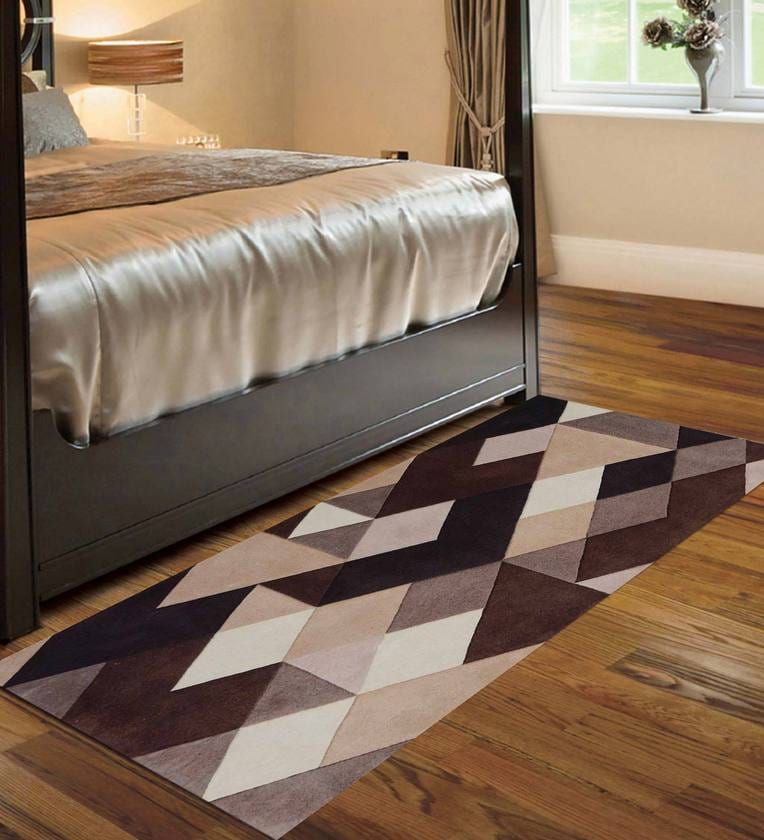 Geometric Pattern Wool 5 X 2 Feet Hand Tufted Bedside Runner