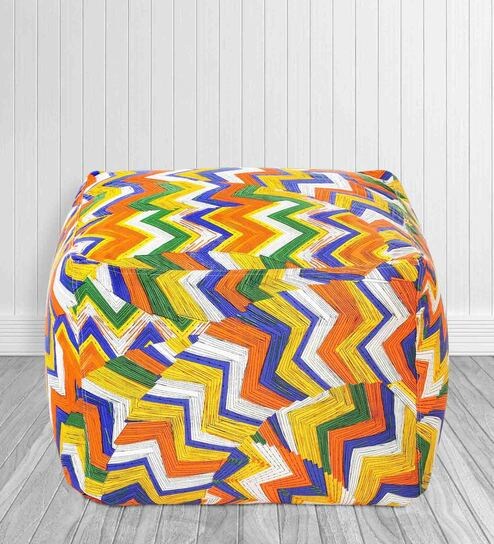 Geometric Square Fabric Pouffe in Multi Colour