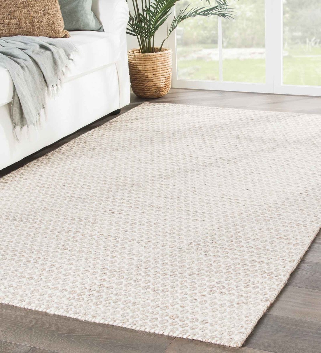White Wool Geometrical 5 x 8 Feet Hand Woven Carpet