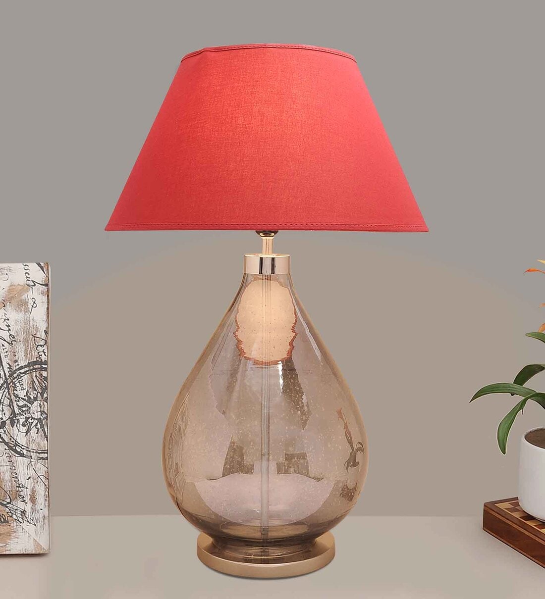 George Maroon Cotton Shade Night Lamp With Metal & Glass Base