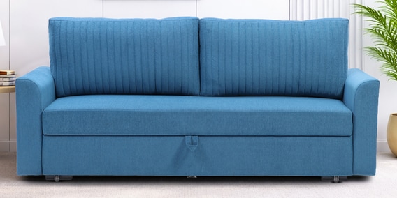Gia Chenille Fabric Sofa Cum Bed in Sea Blue Colour With Storage