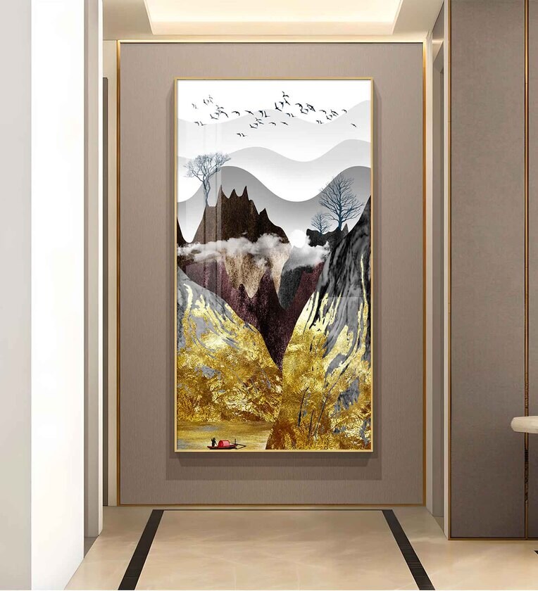 Gilded Mountain Essence Glass Finish Vertical Wall Art