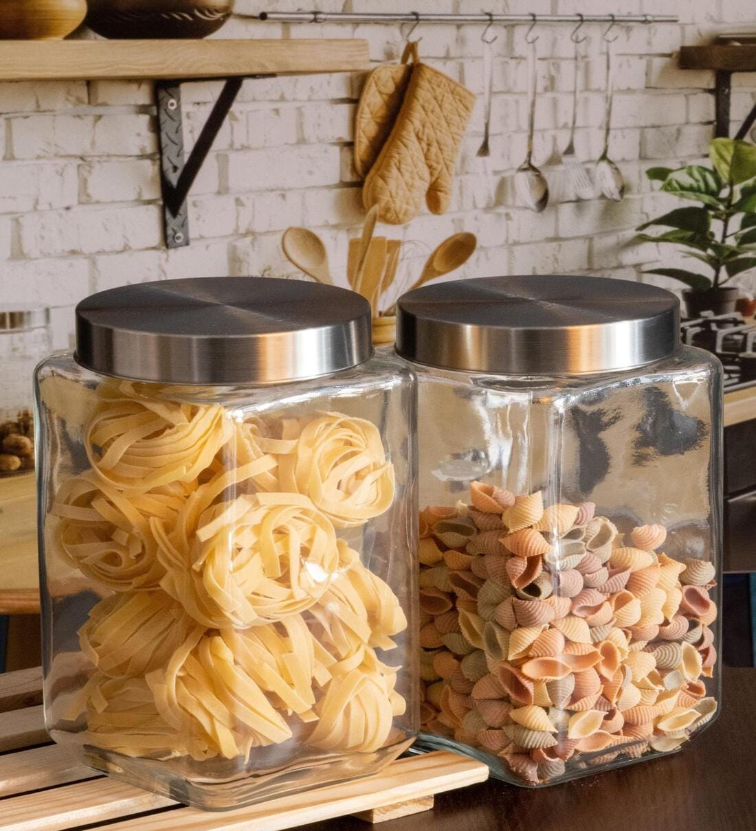 Organise your kitchen with this modern set of storage jars. Simple, contemporary and made to be seen, this storage jar is made from glass. Featuring an airtight easy to use and smooth screw top lid, it is perfect for storing and keeping food fresh for a longer time. A neat contemporary style, this cubical shaped glass jar is great for buying in multiples to store all your essentials and placing together in a neat line to give a modern feel to your storage area.