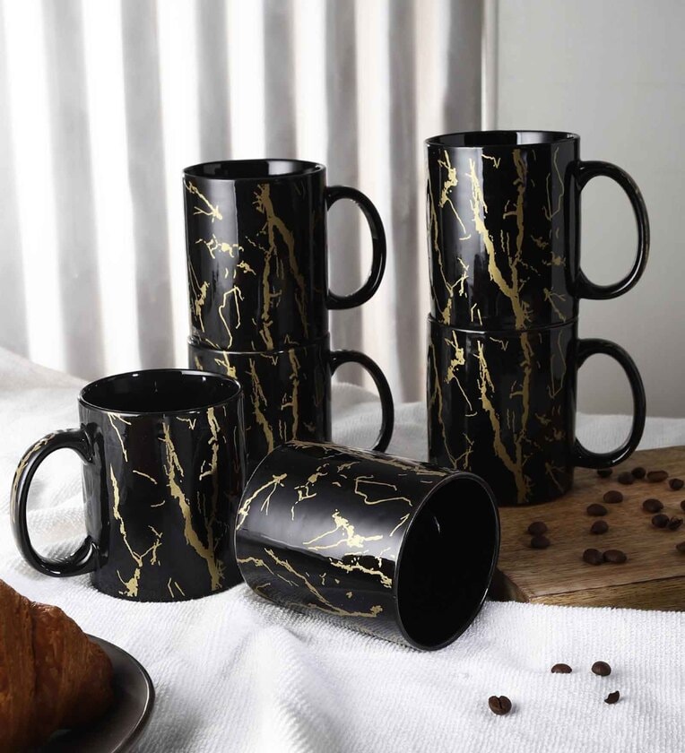 Glazed 270ml Black & Gold Ceramic (Set of 6) Coffee Mug