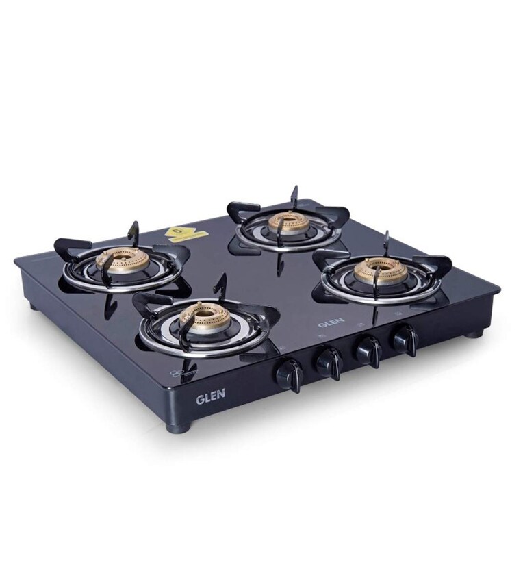 The Glen 1043 Black gas stove with 4 burners is a smart upgrade to your conventional gas stove. It has black powder coated body with toughened black glass top. It comes with 2 big and 2 small burners. It has sturdy pan supports for accomodation of heavy utensils and stainless steel drip tray to clean the spill over easily. Equipped with fuel efficient brass burners, this cooktop is a best asset in longer run. The ergonomic knobs with firm grip ensures swift operation.