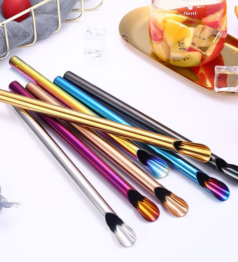 Colorful metals straws available in a variety of vibrant shades. Do away with plastic straws and get on board the reusable train by getting a set of the stainless steel straws. The steel straws are not only reusable but are also quite light weight and durable which makes them easier to carry around.