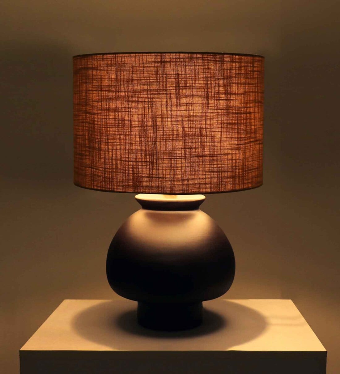 Product Description- Globus Upward Table Lamp boasts an organic design with a contemporary touch, adding a charming ambiance to any space it brightens. Topped with a circular, hardback shade featuring burlap for a subtle texture, the lamp's body is meticulously handcrafted from ceramic. The lamp's gently curved profile, round top, and cylindrical base combine to create a chic and captivating appearance in the rooms it graces.