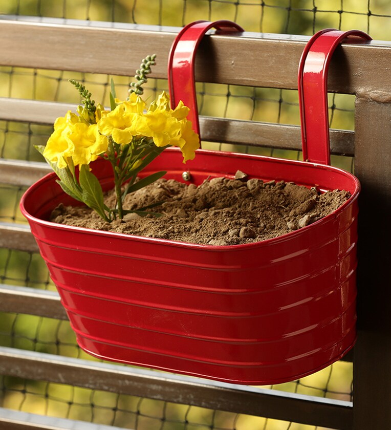 Glossy Red Galvanized Iron Handpainted Railing Planter