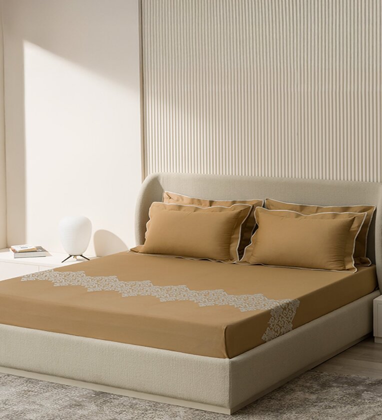 Gold Embroidered 210 TC Cotton King Sized Bedsheet with 2 Pillow Covers