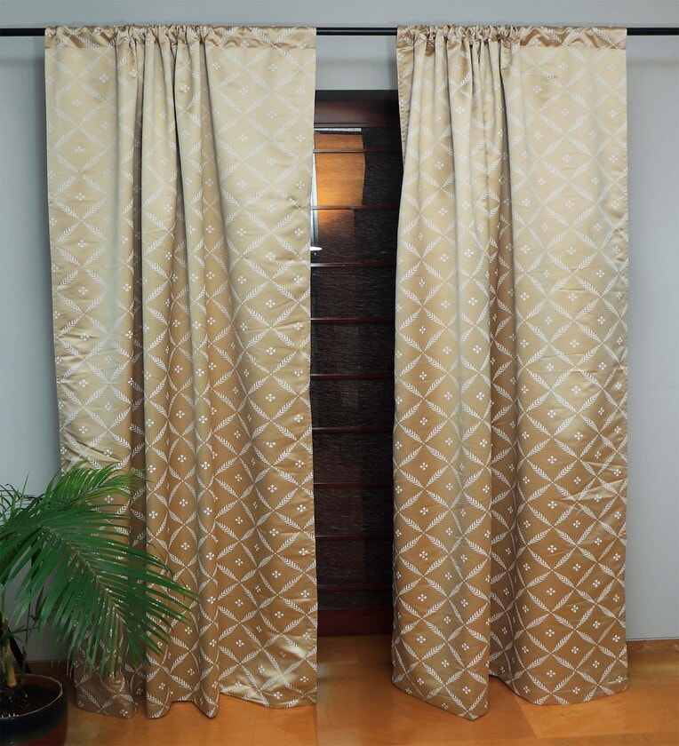 Exotic living space has never been classier, inspired by Abstract screen printed in White against 2 tone golden fabric. Adding a lovely ambience to any room they're placed, these 2 tone golden Curtains have a contemporary feel, alongside the colour, makes any home feel vibrant and cheerful. These curtains will look beautiful in a simplistic and modern environment. This 52x90in curtains has rod pocket tab top for the pleats to falls properly. Seamlessly tailored for quality.