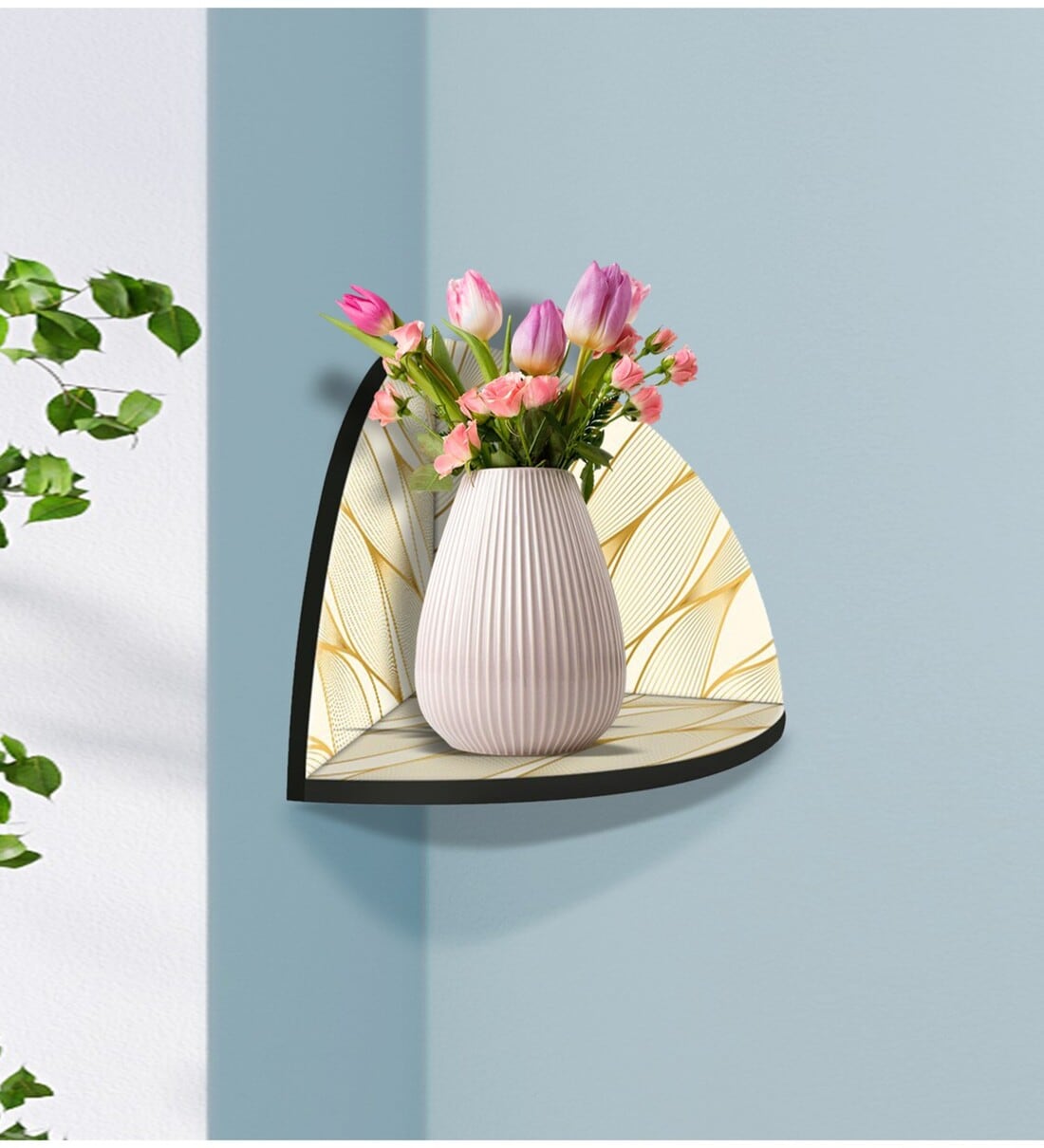 MDF corner with printed designs corner wall shelf for living room with matte finish for perfect home decor.