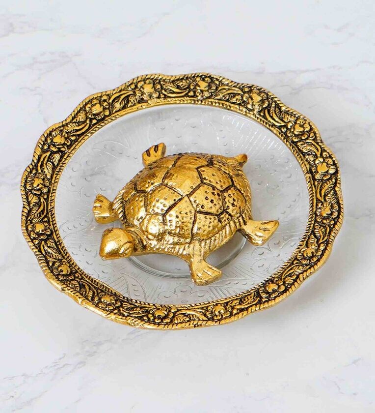 1 Metal Feng Shui Tortoise On Plate Showpiece