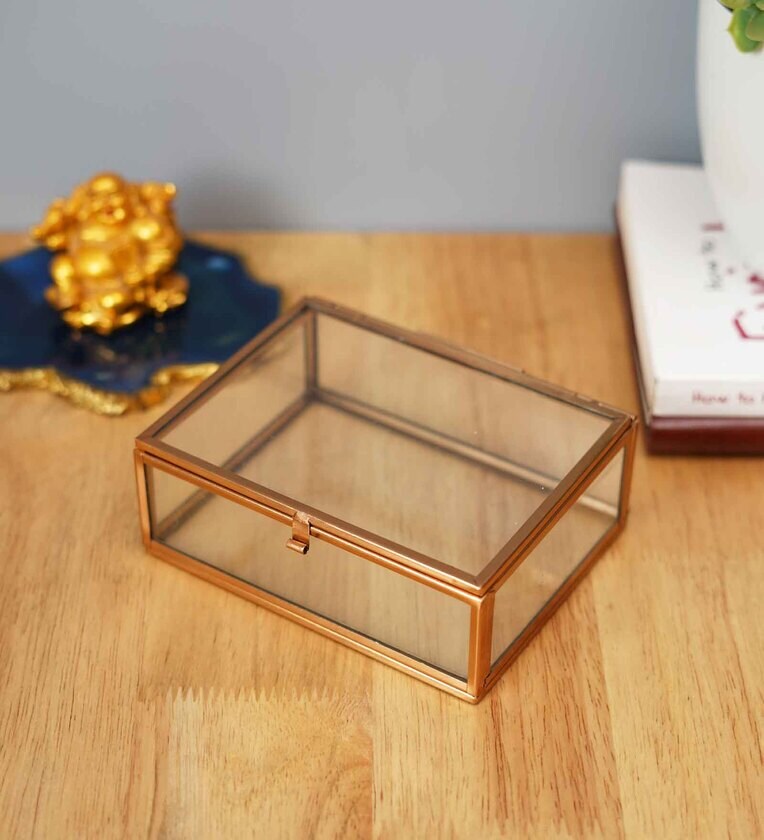 Metal & Glass Gold Jewellery Box