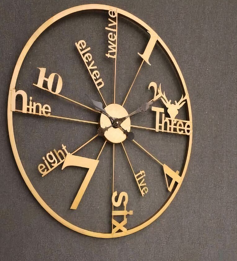 A wall clock is not just a wall clock. It is a piece of art, a piece of wall decor which not only fulfills its traditional job but also uplifts the look and vibe of any space. Match it with the decor of your place and watch it bring a beautiful change to it in an instant! Made with High Quality 1-2 mm Thick MS Metal Steel . Innovative Design & Pulver Finish. Easy to hang, with No TikTIk machine ,Laser Cut Finish, Unbreakable.