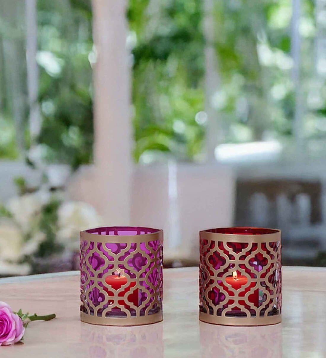 Gold Metal Set Of 2 Cut Work Design Votive Holder Candle Holder Set of 1