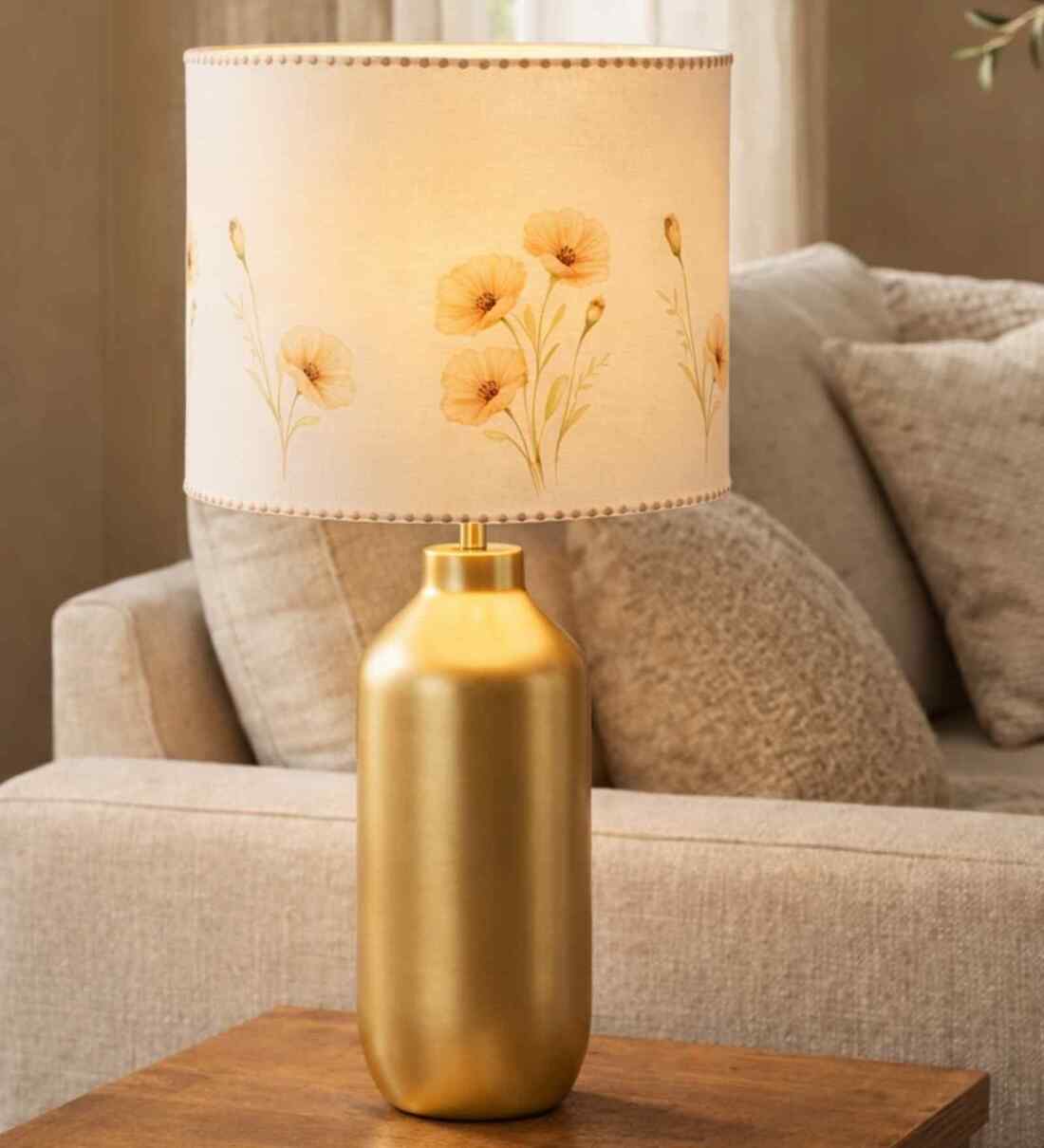 Add a warm and stylish touch to your space with this elegant metal table lamp. Featuring a sturdy metal base and a beautifully printed fabric lampshade, it provides soft ambient lighting (200 400 lumens), perfect for bedrooms, living rooms, or study areas. Designed with an E-27 bulb base for easy compatibility, the lamp comes complete with 1 lampshade, 1 base, 1 bulb, holder & shade ring, and a convenient on-off switch for smooth operation. A perfect blend of functionality and decor. Size:- Overall Lamp(LXBXH):- 25X25X50 cm Shade (LXBXH):- 25X25X20cm Base (LXBXH):- 11X11X25cm