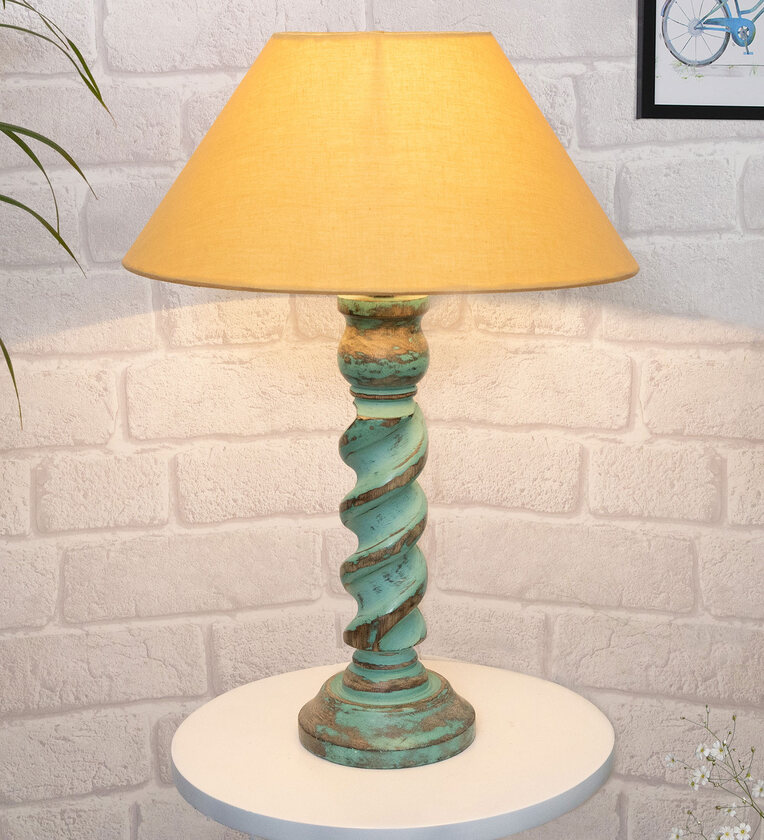 Gold Shade Table Lamp With Wooden Base