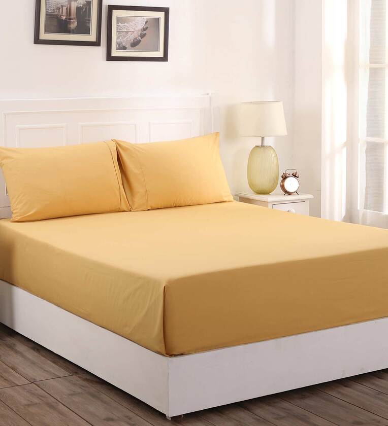 Gold Solid 200 TC 100% Cotton King Sized Bed Sheets with 2 Pillow Covers