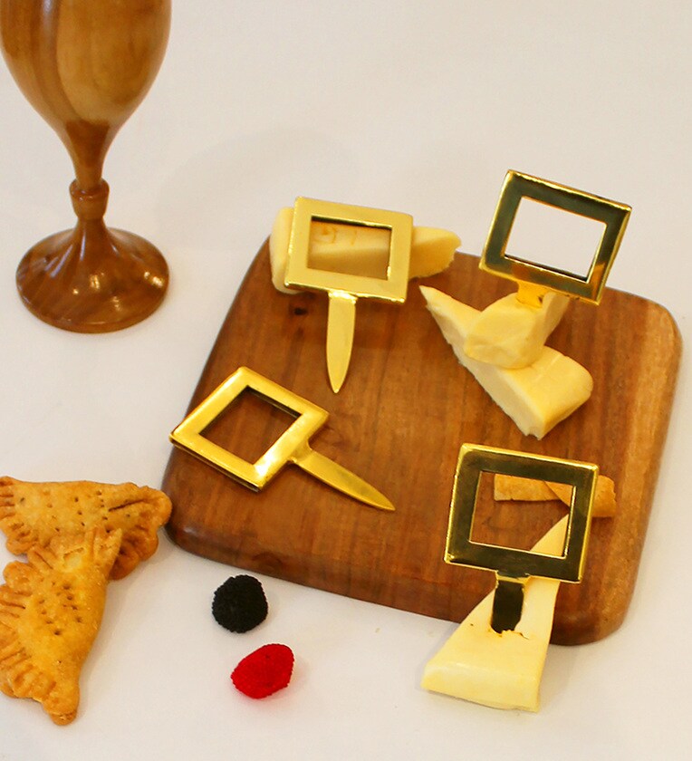 Mark your cheese platter with Izzhaar s unique State Cheese Marker Set. Add grace to your cheese platters and give the servings a regal feel. Made of fine metal with embellished gold plating, the cheese markers are also perfect for marking cupcakes, food, or other charcuterie food items. Now, tag your all food items with added elegance and impartiality. Get it for your table decor or make your family members, relatives, or friends fine evening party more charismatic with these metal cheese markers.