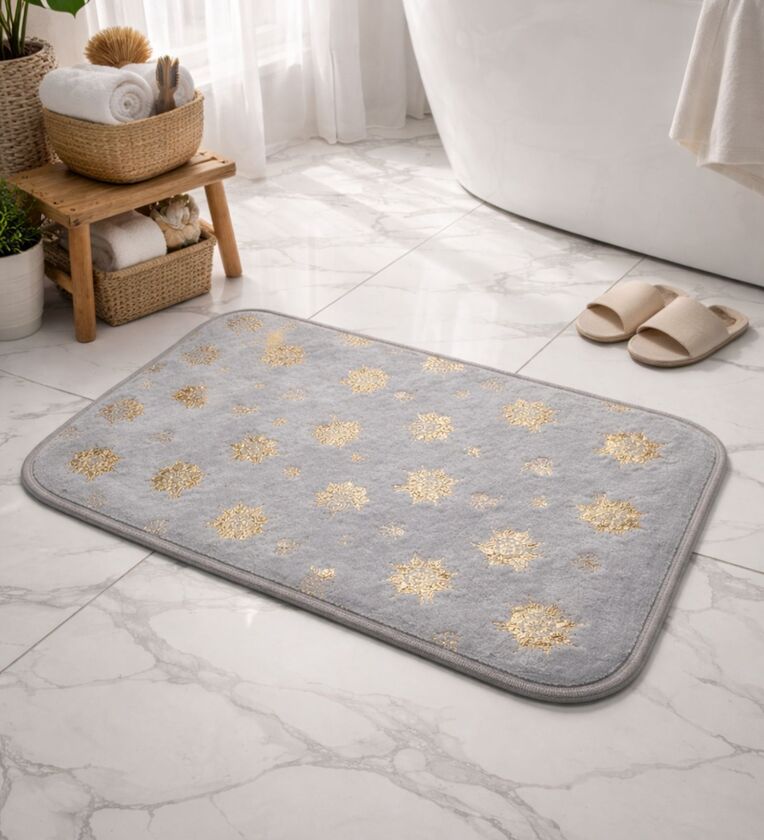 Golden Flower Memory Foam Bath Mat (60 40 cm)