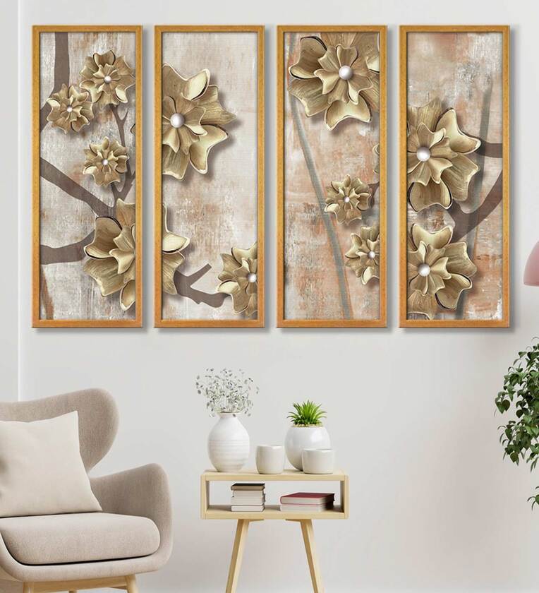 Golden Flowers Abstract Wall Art Panels