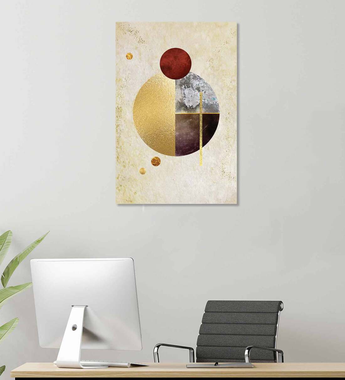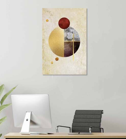 Golden Geometric Multicolour Canvas Teakwood And MDF Framed Art Print