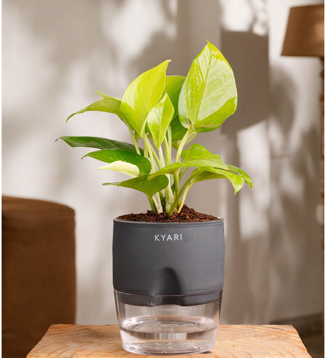 Golden Money Plant Plant With Self Watering Pot- Grey