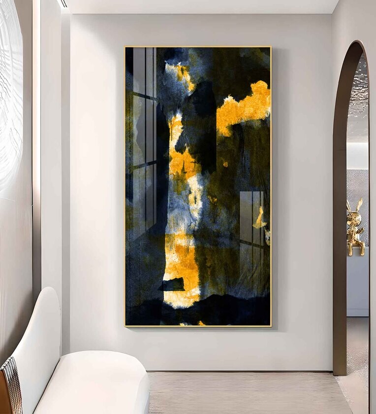 Golden Nightfall Glass Finish Vertical Wall Art