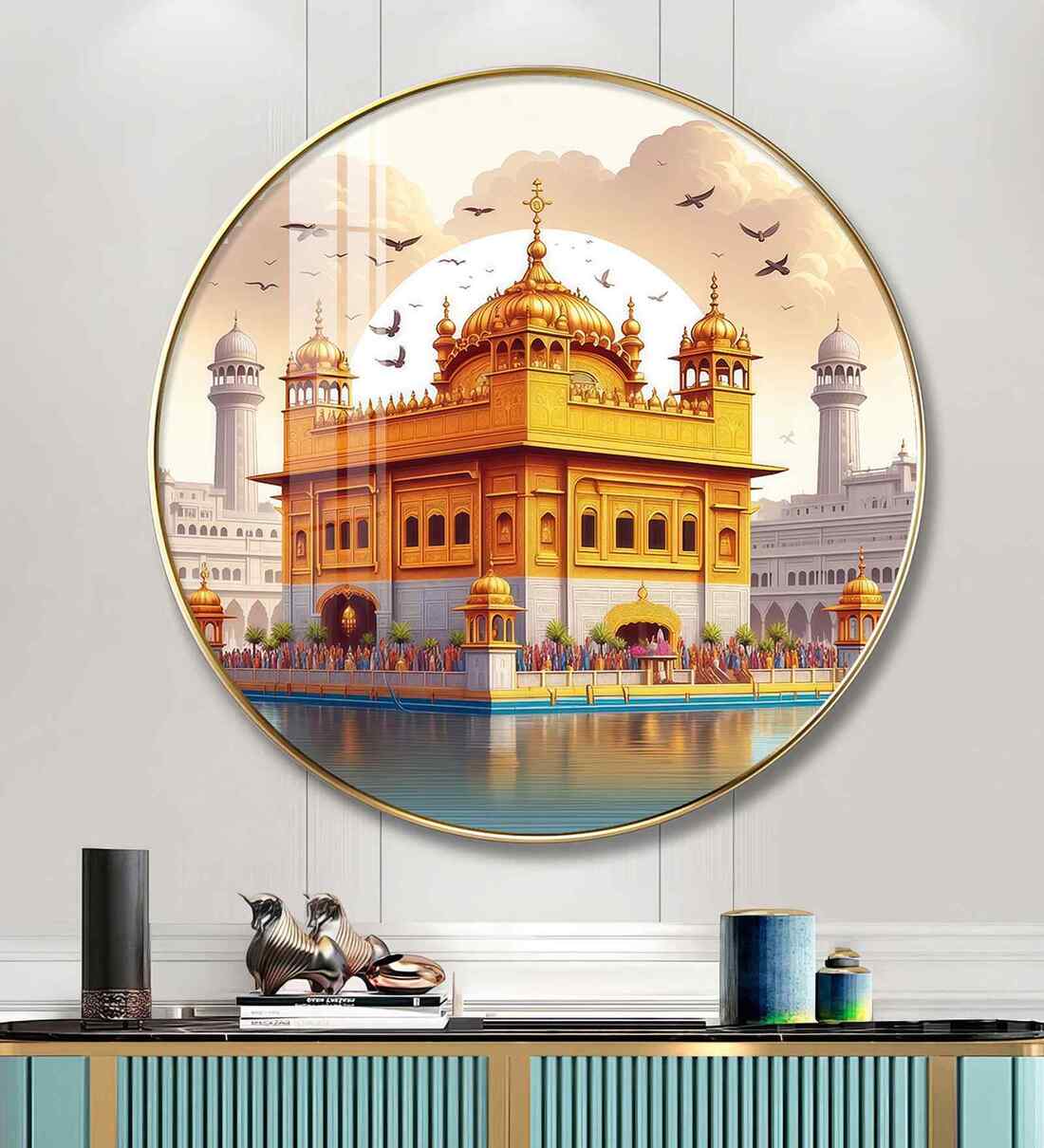Bring home the timeless elegance of nature with our Golden Temple Wood Glass Finish Round Wall Art. The vibrant hues and intricate detailing of the design, a perfect balance of grace and grandeur, making it a captivating centerpiece for your living room, hallway or bedroom. Designed to symbolize prosperity, beauty, and positivity. High-definition print, Durable long-lasting quality material wall art perfect for modern and traditional interiors
