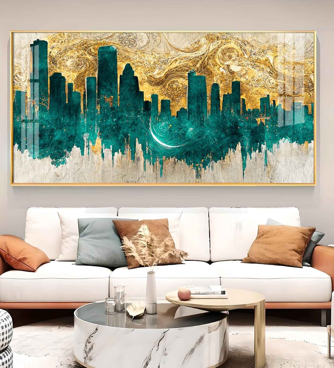 Golden Urban Vista Glass Finish Horizontal Wall Art