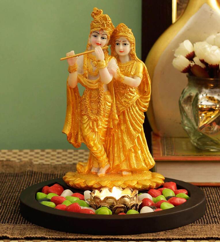 Golden White Polyresin 8.2 Inches Lord Radha-Krishna Idol Statue