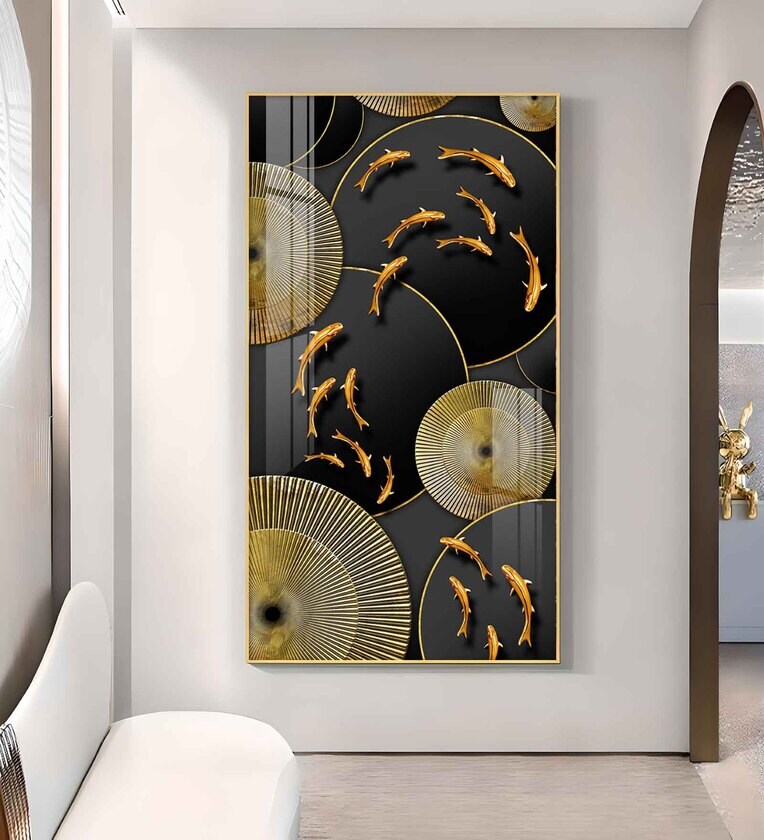 Goldfish Elegance Glass Finish Vertical Wall Art