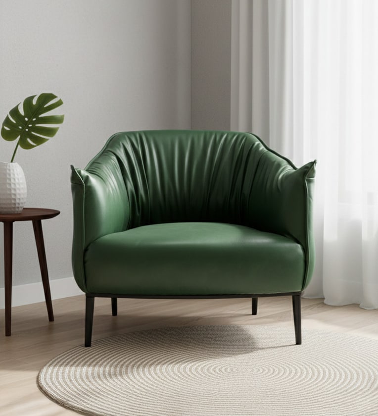 Grandiose Tufted Berg re Faux Leather Lounge Chair In Green Colour
