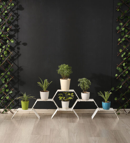 Rust Proof & Colourful Outdoor/ Indoor Garden Plant Stand : MeshableS Grandis Is A Unique Floor Mounted Plant Stand Or Planter Stand Designed To Give An Aesthetic Solution To Organize Your Plants. Open Grid Structure Of Metal Mesh Stand Makes Sure There Is No Stagnation Of Water Under The Pots And Hence No Staining Of Flooring. It Can Be Arranged In A Honeycomb Pattern Adding To Your Garden Decor.