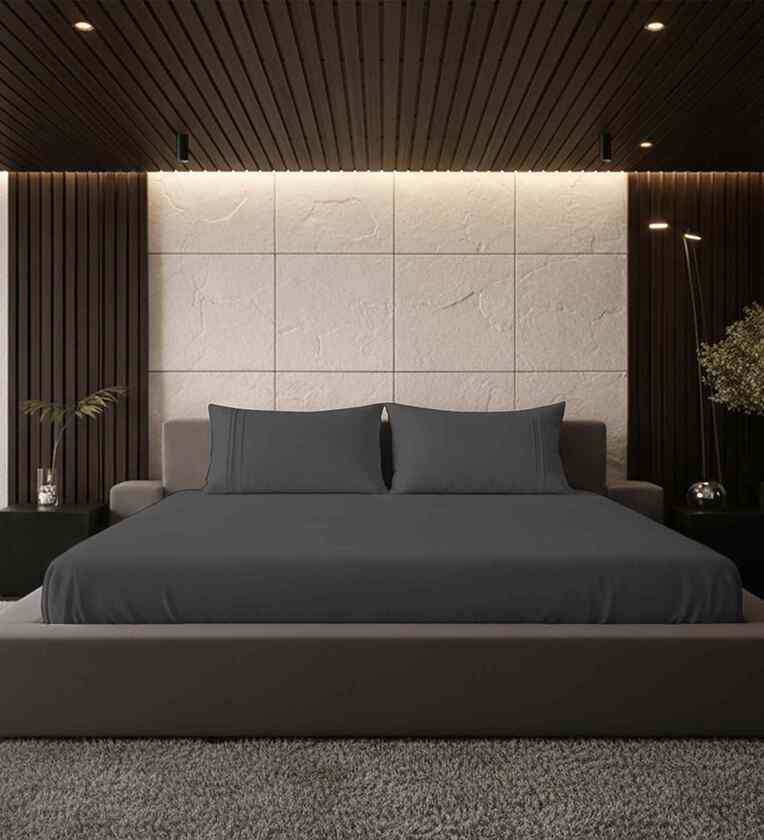 Granite Gray Solid 500 TC Pure Cotton King Fitted Bedsheet with 2 Pillow Covers