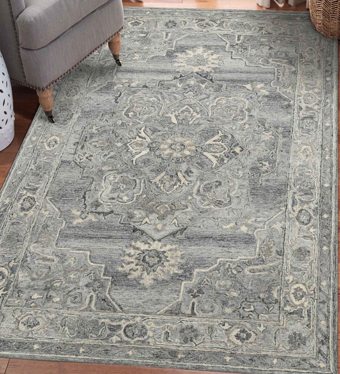 Grey Persian Viscose 5 ft x 7 ft Hand Tufted Carpet