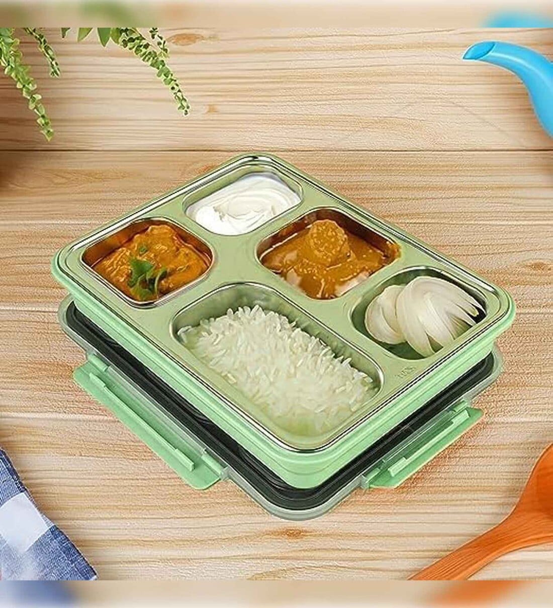 Green 900ml Stainless Steel Rectangle Lunch Box