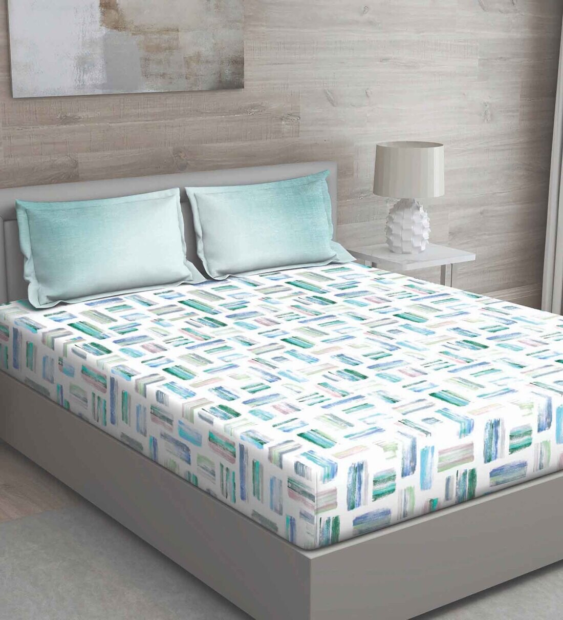 Green Abstract 144 TC Cotton Queen Sized Bed Sheets with 2 Pillow Covers