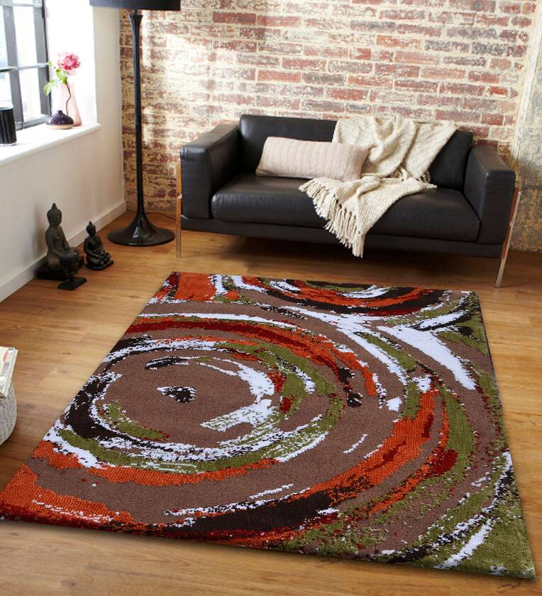 Green Abstract Polyester 6 ft x 9 ft Hand Tufted Carpet