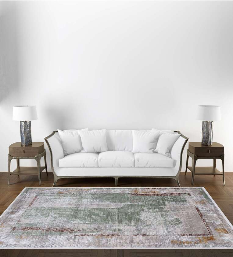 Green Abstract Polypropylene 6 ft x 9 ft Machine Made Carpet